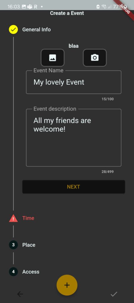 Beim Erstellen einer Veranstaltung konnte man einen Namen und eine Beschreibung angeben.